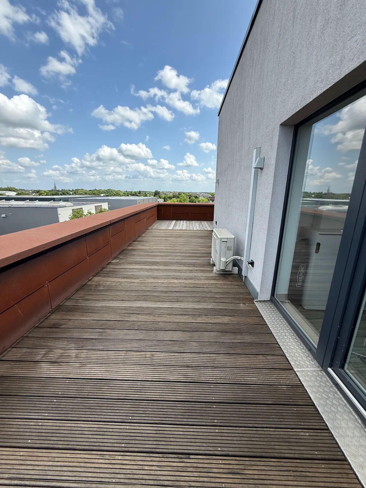 Kostenlose Parkplätze direkt am Objekt sowie kurze Wege zum Flughafen Düsseldorf sorgen für eine bequeme Anreise. Die Räumlichkeiten erstrecken sich über zwei Etagen mit großen Fensterfronten, bieten eine sonnendurchflutete und zeitgemäße Umgebung sowie eine nutzbare 50qm Dachterrasse.