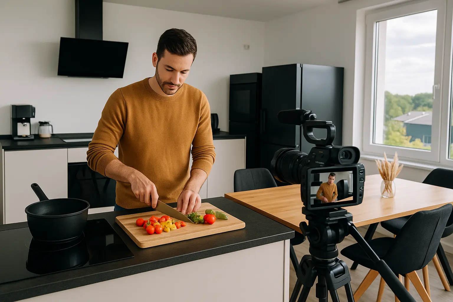 Kreiere kulinarische Highlights im lichtdurchfluteten Kochstudio von Studio B15 in Willich: Mit moderner Ausstattung, viel Platz und direktem Zugang zur großzügigen Terrasse ist dieser Raum perfekt für Food-Shootings, Kochkurse oder kreative Workshop-Formate. Genieße höchste Flexibilität, inspirierendes Ambiente und optionalen Verpflegungsservice.